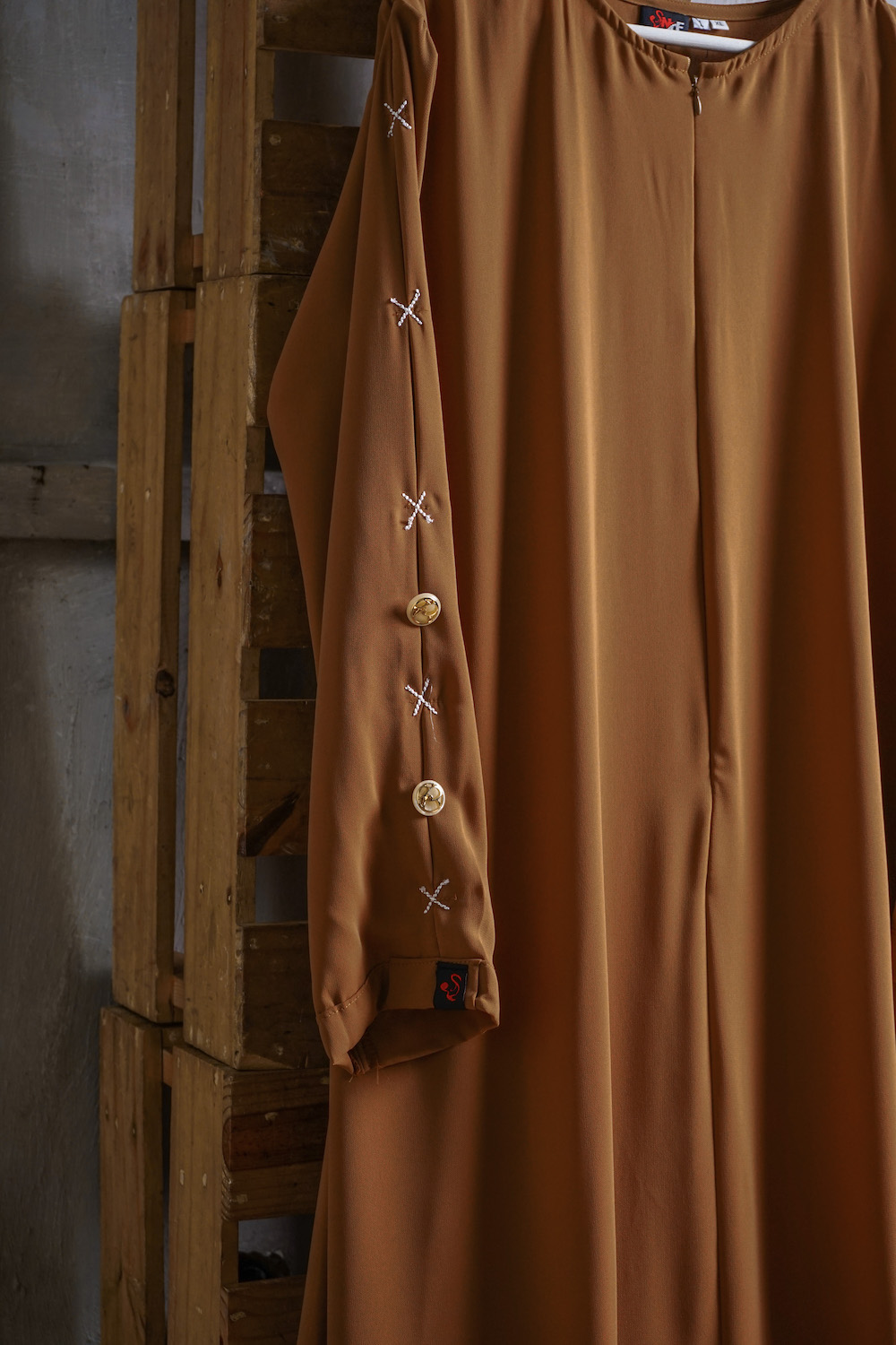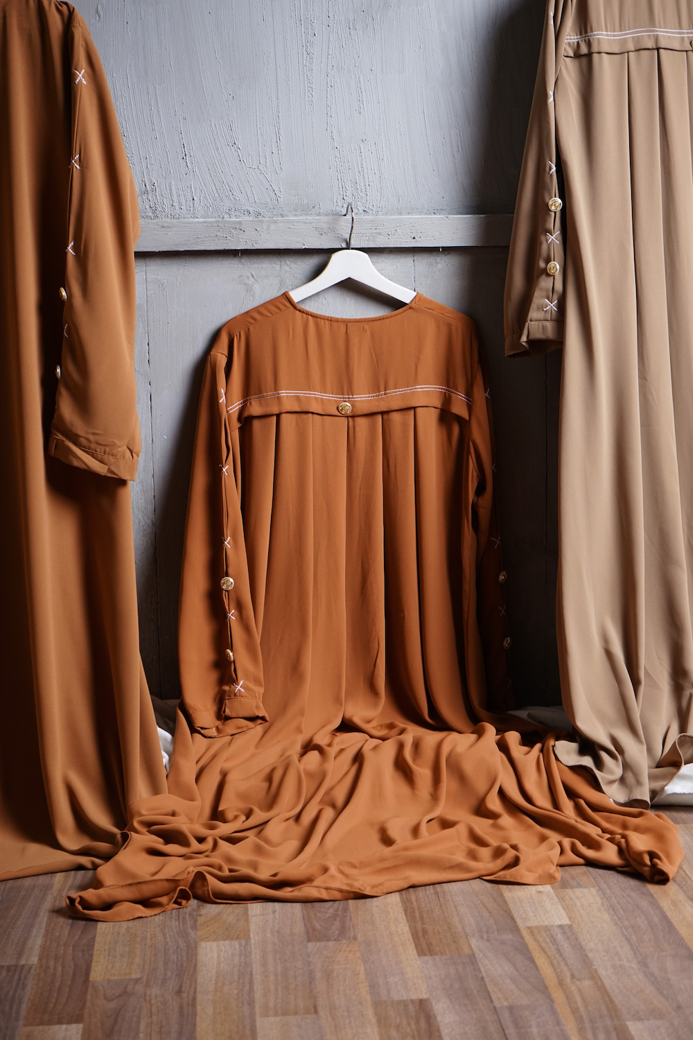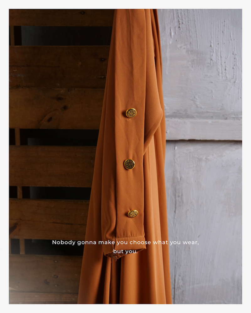 – bagian depan abaya polos namun terdapat rempel pada bagian belakang abaya.