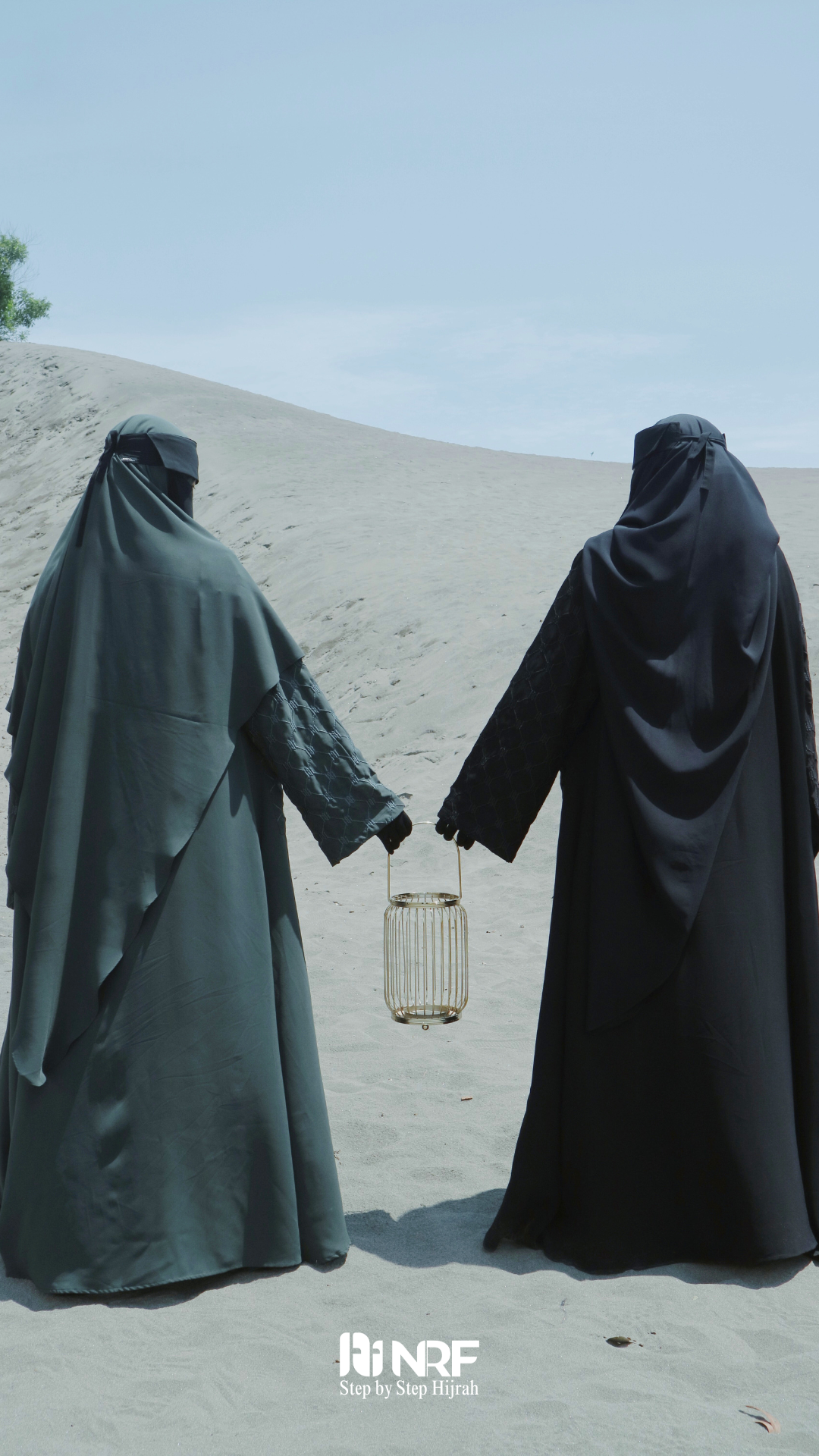 ✔️ Lengan eksklusif di desain dengan bordir logo NRF di bagian Outer Abaya.
